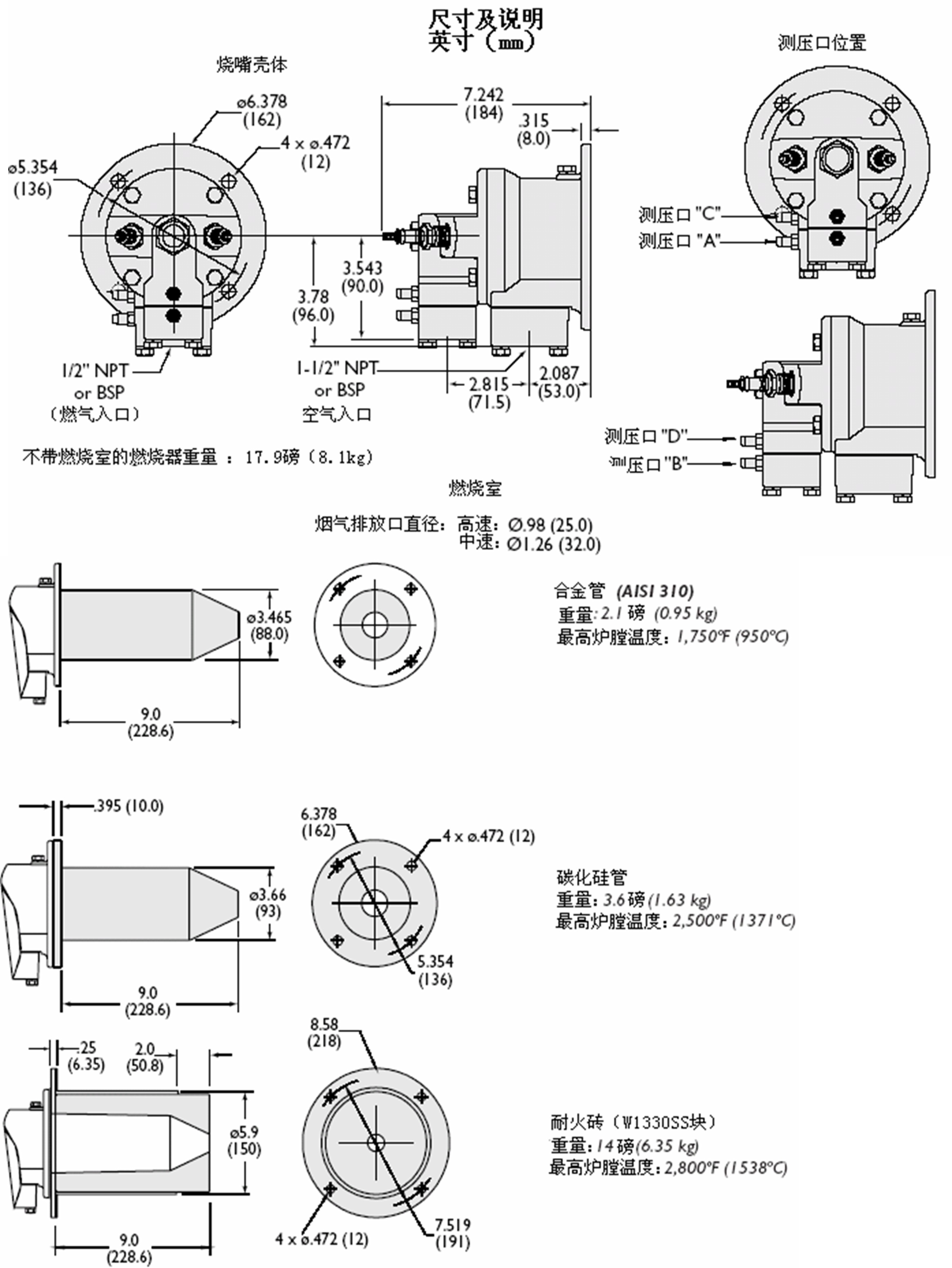 对其他类型混合燃气,请与本公司联系确认孔板尺寸 |