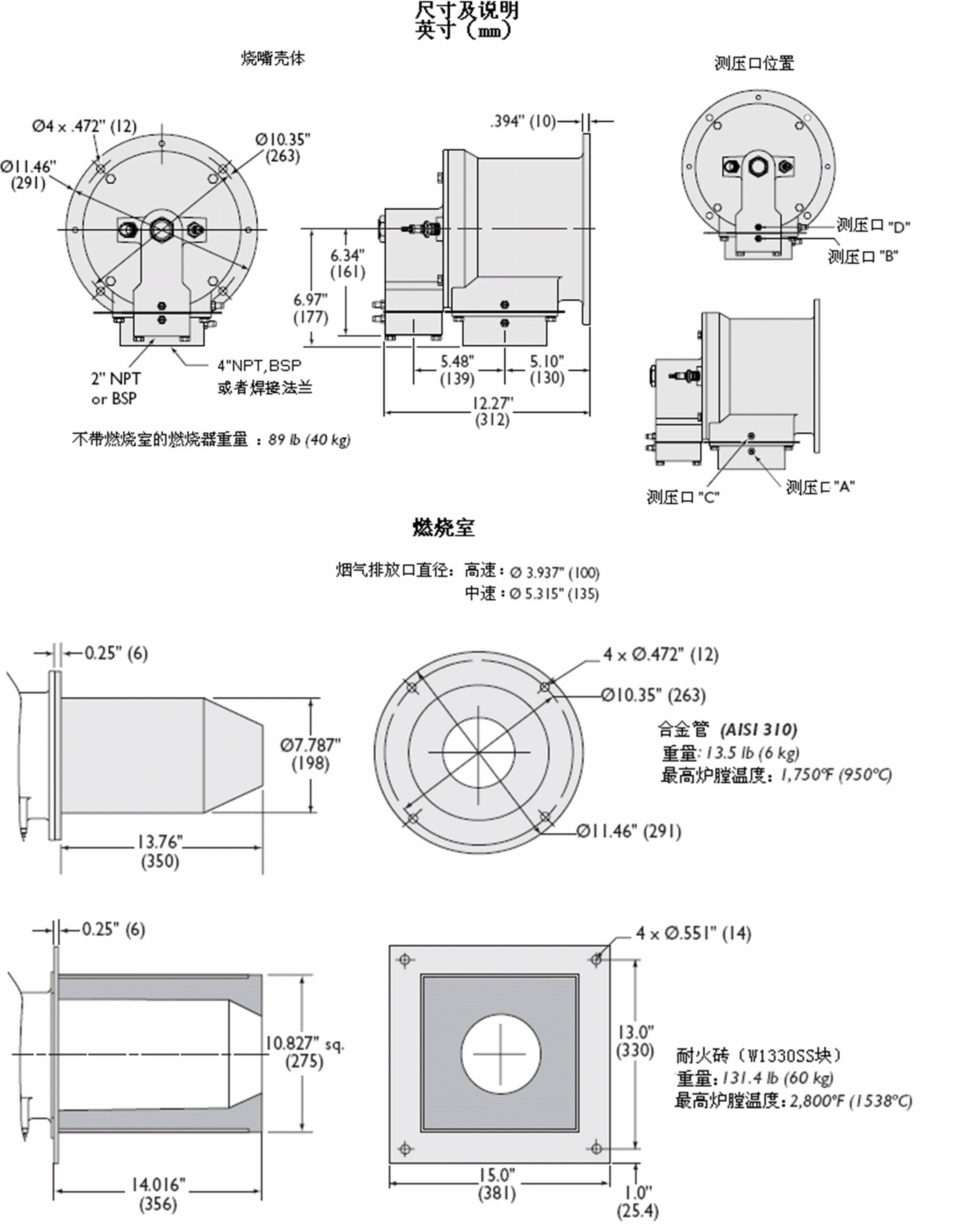 (从燃烧室末端开始测量) |