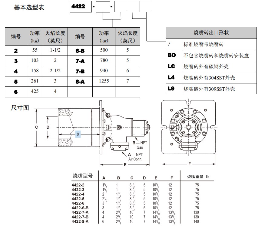 4422燃气烧嘴广泛地应用在热处理、有色熔炉、窑炉、烤炉、空气加热炉、干燥器、化工过程设备和其他要求温度高度