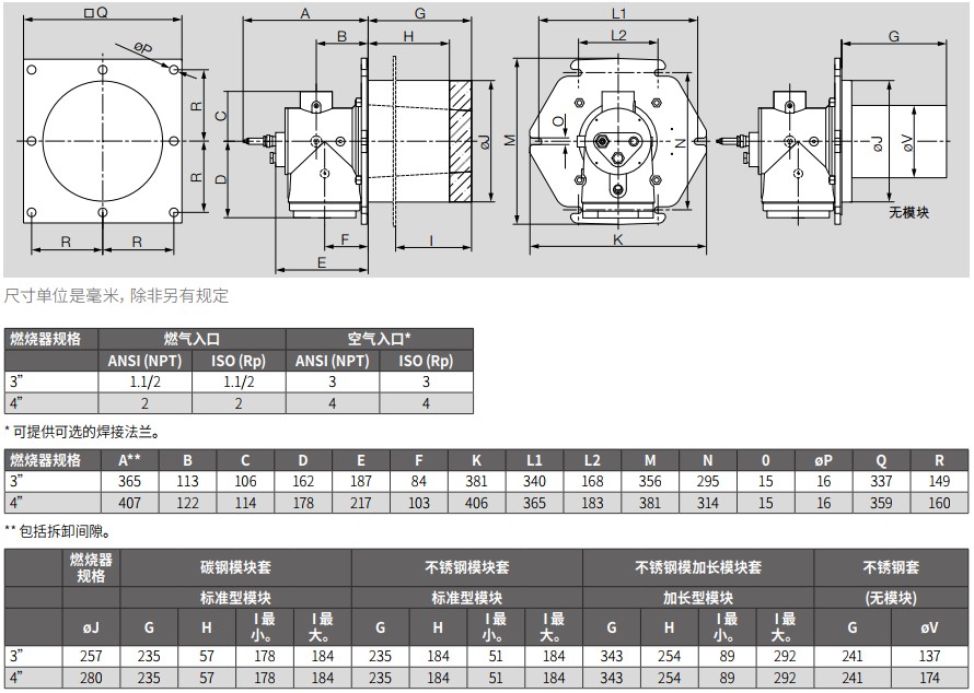 燃烧器尺寸参数
